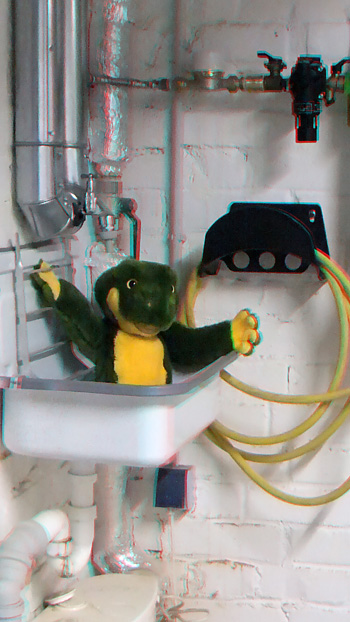 | 916 PHOTO 3D – Kellerimpressionen mit Frosch (2025) Stereoaufnahmen mit meiner Digitalkamera Fujifilm Finepix Real 3D. © streckov ! Zur Darstellung der räumlichen Tiefe auf nicht 3D-fähigen Medien habe ich die Fotos per Anaglyph-Verfahren konvertiert und im Anschluss in das 9 zu 16 Format eingepasst. |
