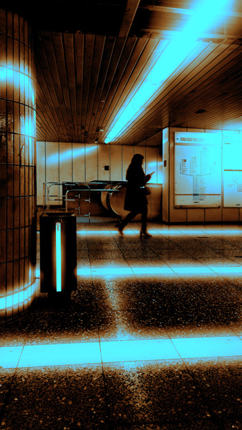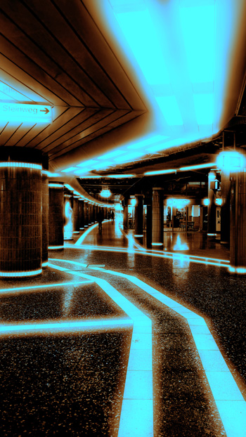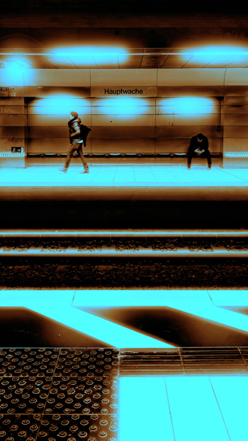 | 916 PHOTO MODE – Frankfurt Hauptwache (2025) Mit meinem Smartphone eingefangen und nachträglich stark verfremdet. © streckov ! Alle Aufnahmen stammen von mir und ich habe sie anschließend selbst manuell per Bildbearbeitungsprogramm ohne künstliche Hilfe nachbearbeitet. |